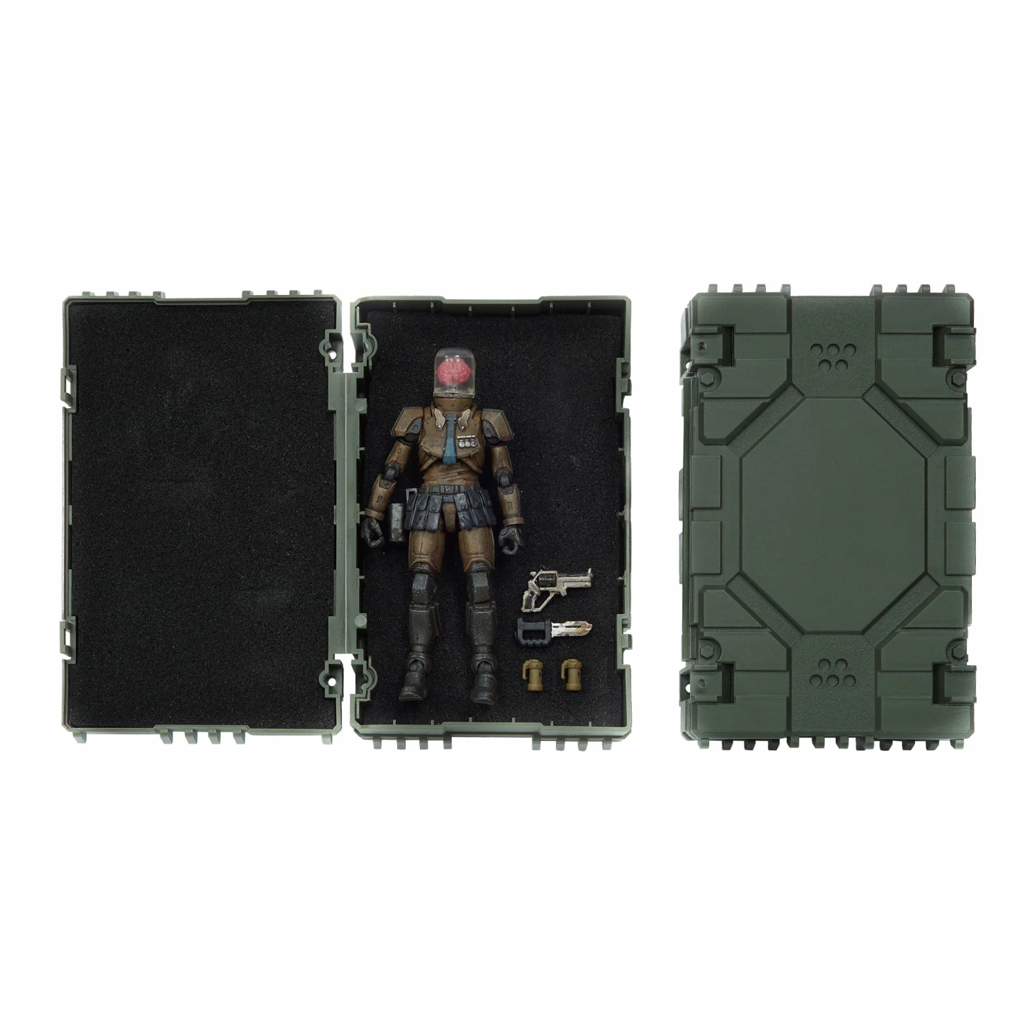 Figures come packaged in a plastic ammo case-style box featuring foam cutouts to house the figure and with a slip case sleeve with printed art.