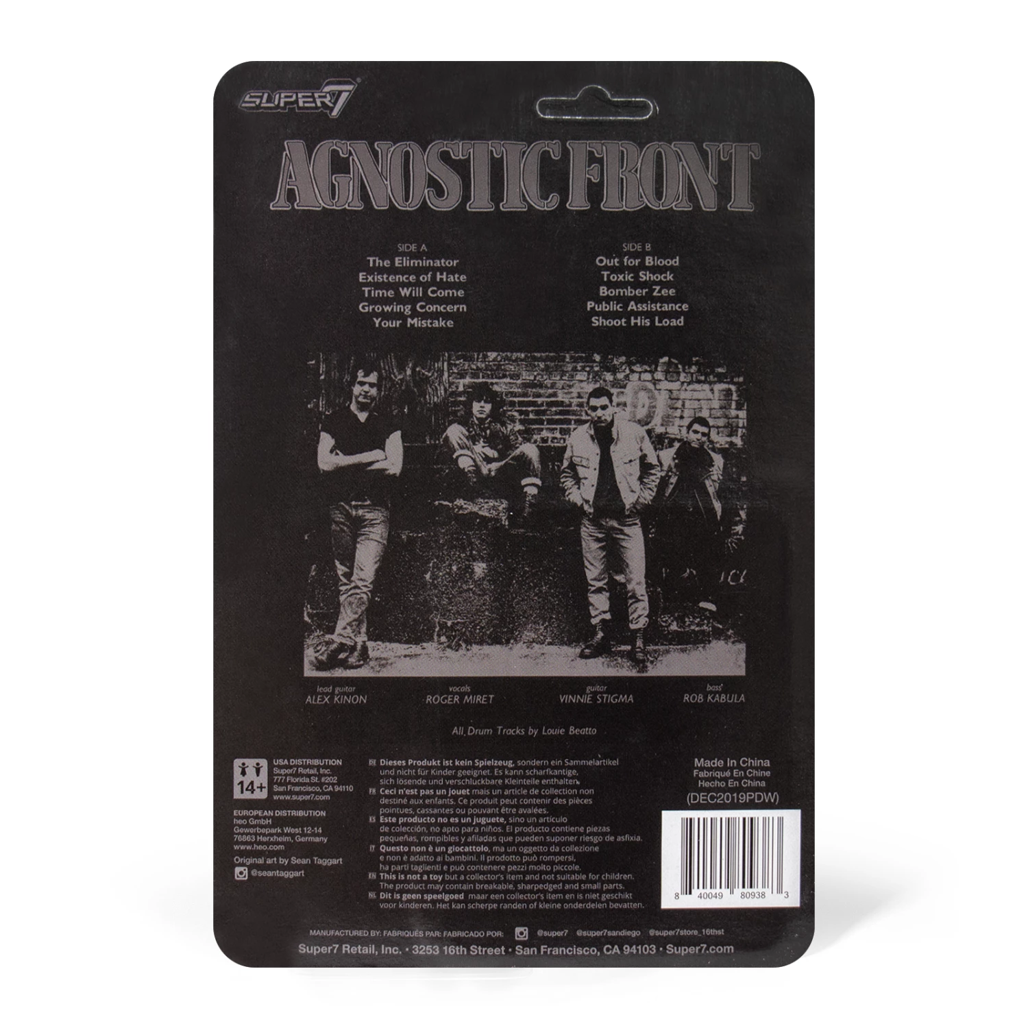 The limited edition Super7 x Agnostic Front exclusive 3.75″ ReAction Figure from the January 2020 Persistence European Tour! Super7 received a small allotment of this figure to offer after the tour.