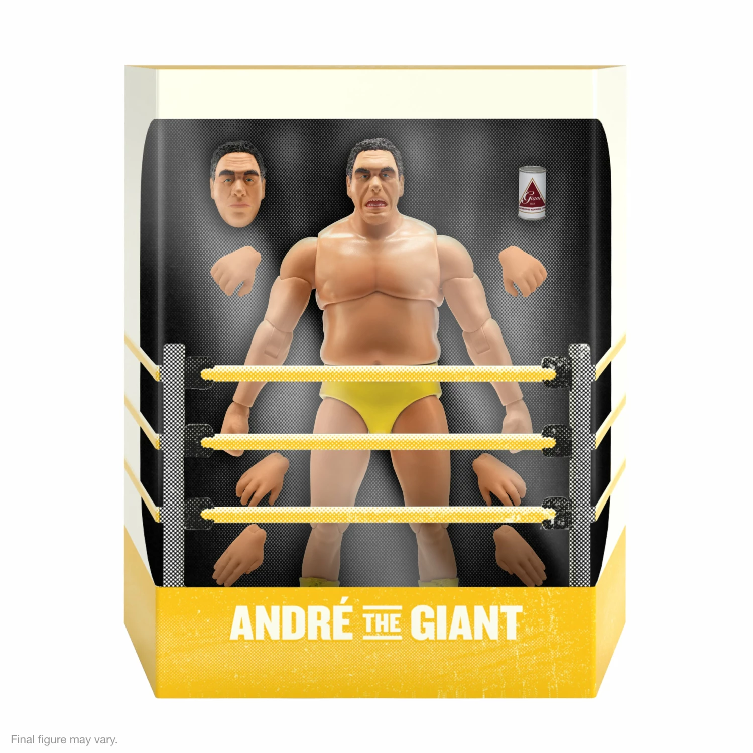 Making his way to the ring, from Grenoble in the French Alps, weighing in at 476 lbs, he is the 8th Wonder Of The World… ANDRE THE GIANT! The 7’2″ legend makes his way back to the Super7 ULTIMATES! line! Andre The Giant wrestled all over the globe, but this time around, Super7 pays tribute to his time on the grandest stage of them all. In 1986, Andre outlasted 19 men in a 20-Man Battle Royal, reminding everyone on the entire roster that he was still a force to be reckoned with. Standing at 8 inches tall and packed in a deluxe slipcase style box, Andre comes in the yellow trunks and boots he wore in that famed match along with multiple accessories including swappable heads, hands, and his signature can of beer.
