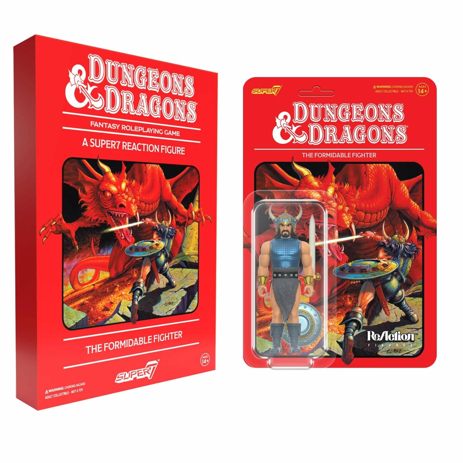 Taking on an epic adventure and facing down fearsome beasts is not for the faint of heart or frail of body! This articulated, 3.75” scale SDCC edition Dungeons & Dragons ReAction Figure of Formidable Fighter certainly looks ready to take on any manner of challenge with determined scowl, bulging muscles, and horned helm as well as included sword and battle-scarred shield accessories. Inspired by artwork on the classic Dungeons & Dragons Red Box, the SDCC edition Dungeons & Dragons Formidable Warrior ReAction Figure can be your real-life avatar as you navigate any adventure your imagination can conjure! Comes packaged in a recreation of the red box.