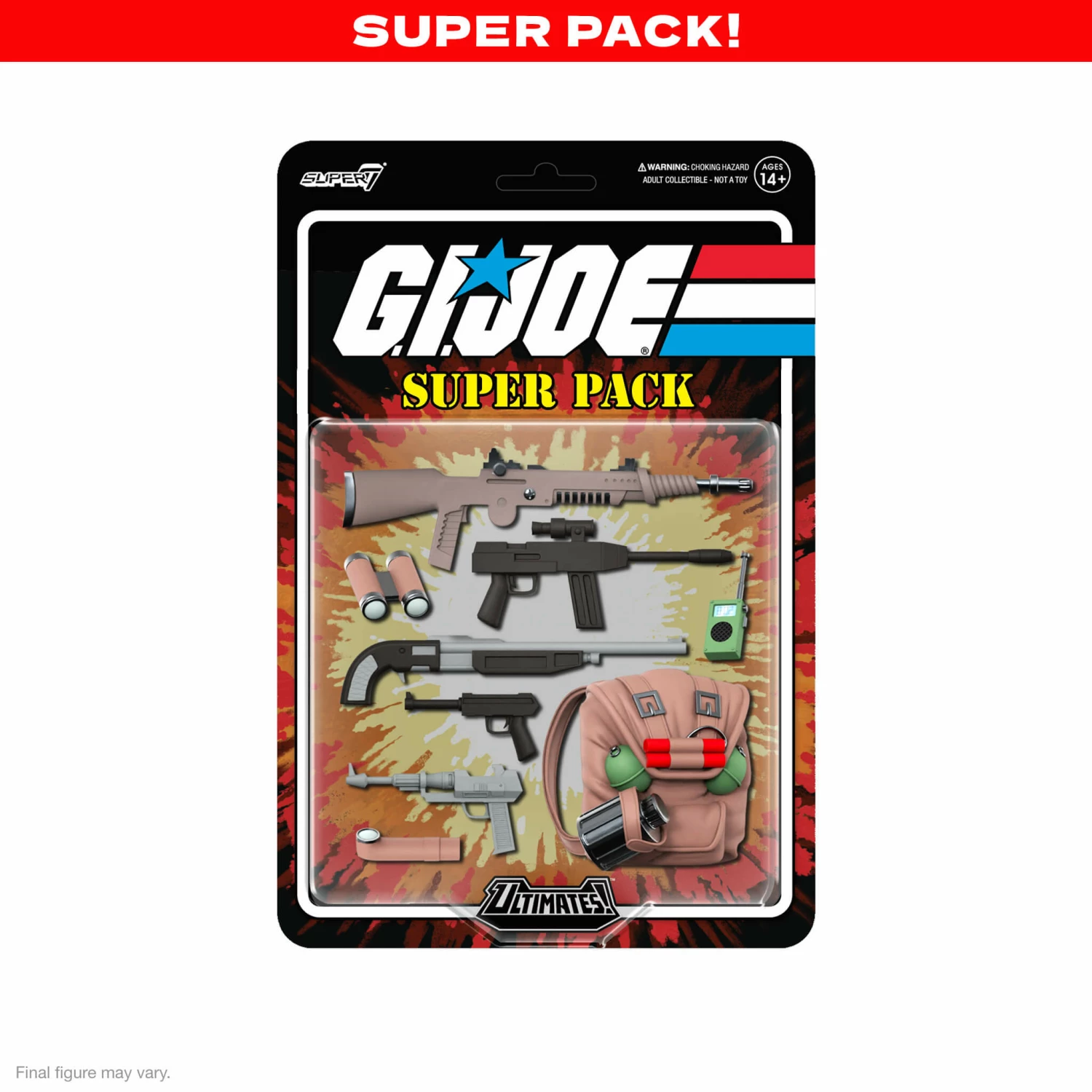 Assemble the complete G.I. JOE Wave 4 ULTIMATES! collection and receive an Exclusive Super Pack! An assortment of action-packed tactical accessories to begin building your ULTIMATES! armory. Available only with the purchase of the full wave of Super7 ULTIMATES! Action Figures from Super7.com. Yo Joe!