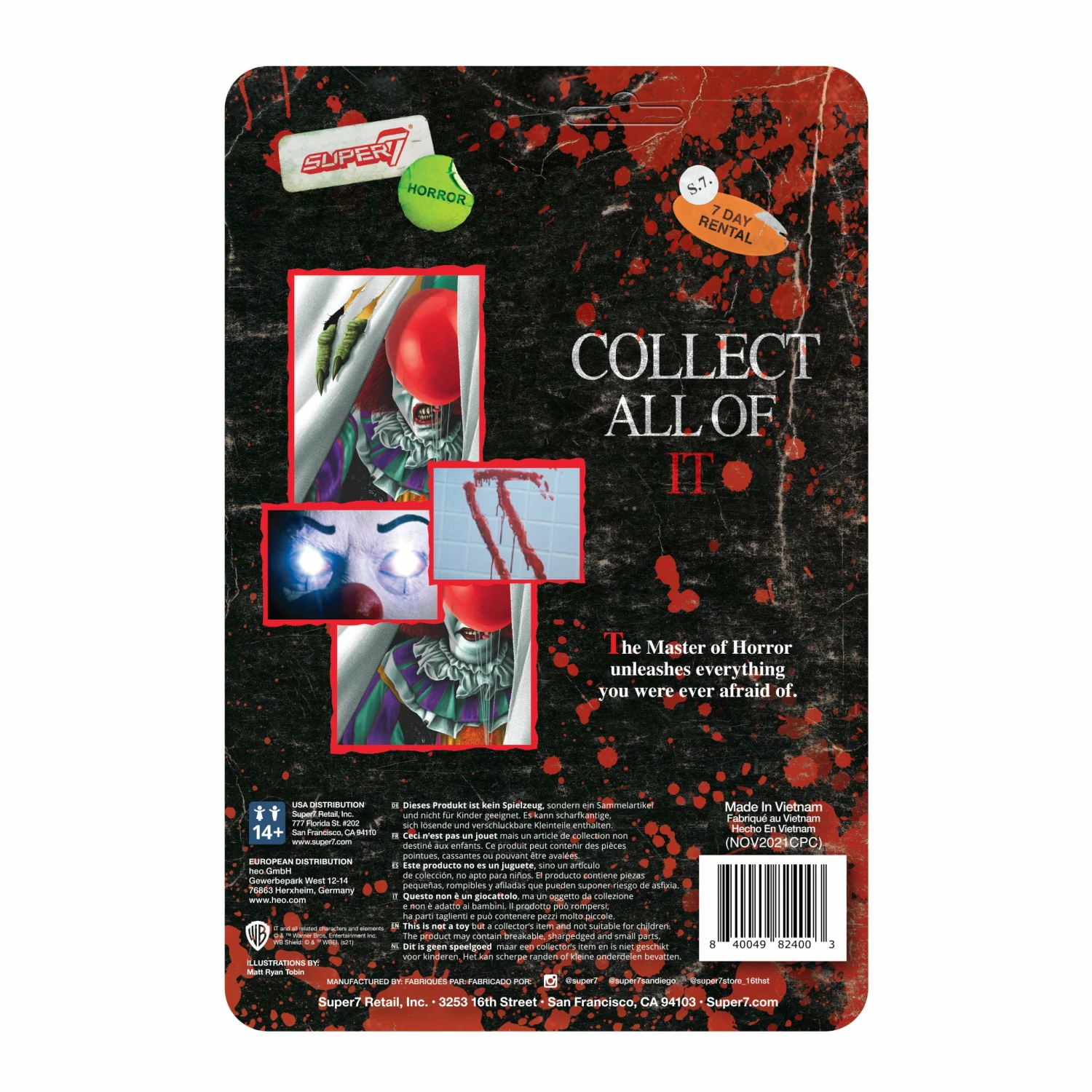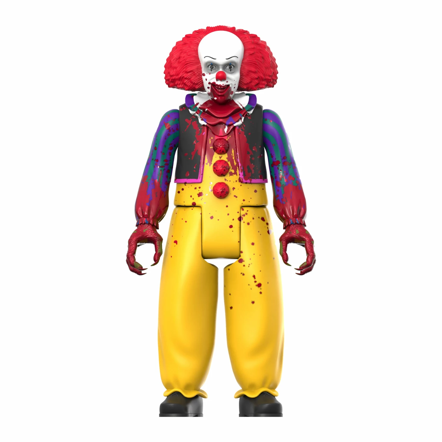 The demonic clown Pennywise has risen from his 27-year slumber and is thoroughly enjoying wreaking bloody carnage and mayhem! This 3.75” IT ReAction Figure of Monster Pennywise features a generous blood-splatter effect on both the figure and cardback. Inspired by the demonic clown’s appearance in the 1990 TV miniseries, the Blood-Splatter Monster Pennywise ReAction Figure would be a frightfully welcome addition to any horror collection!