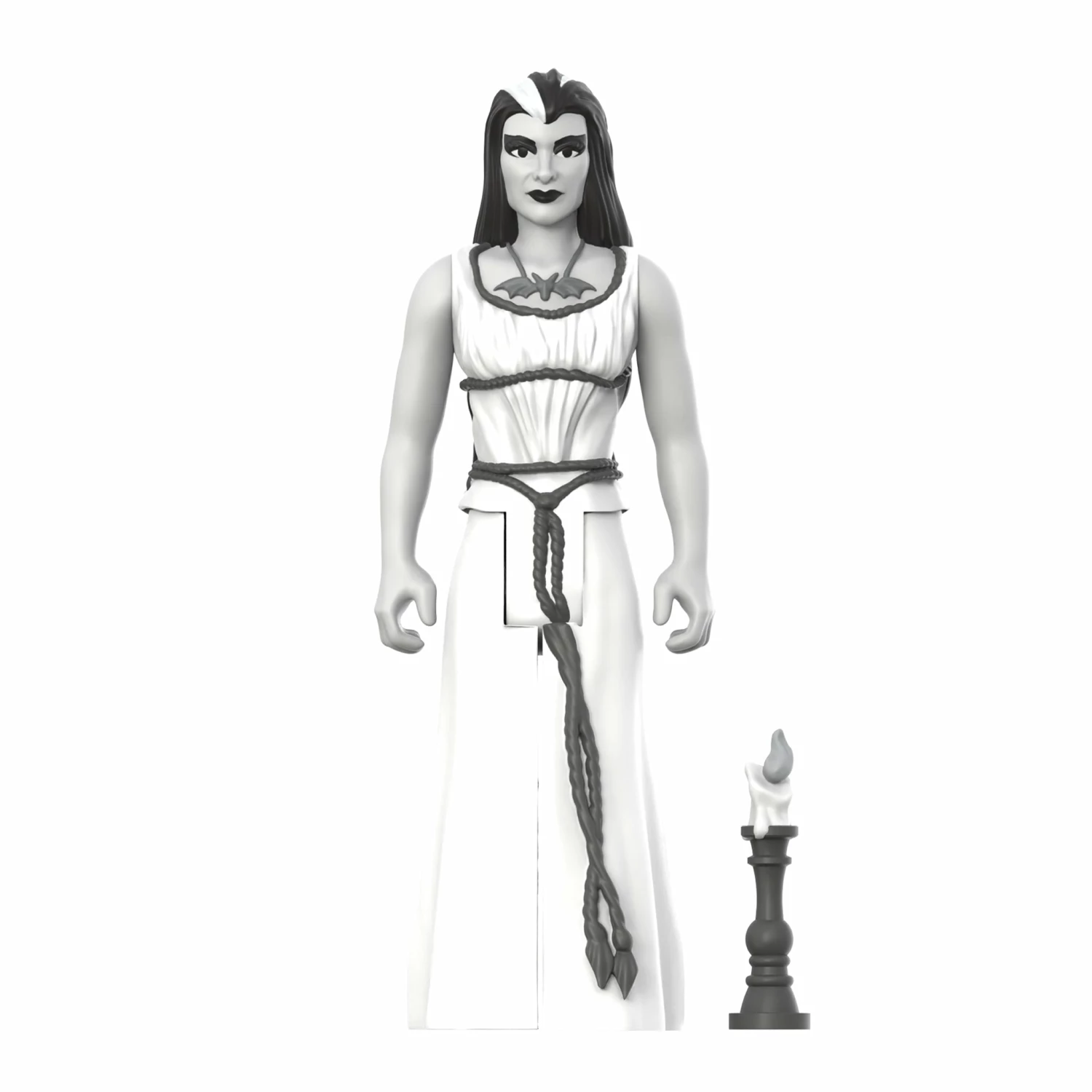 She may be black & white, but don’t you dare call her drab! This 3.75” scale articulated ReAction Figure of Lily Munster features a grayscale colorway inspired by her appearance on the vintage TV show and includes a candlestick accessory. The new wave of The Munster ReAction Figures may be monochromatic, but adding them to your collection will still make it far more colorful!