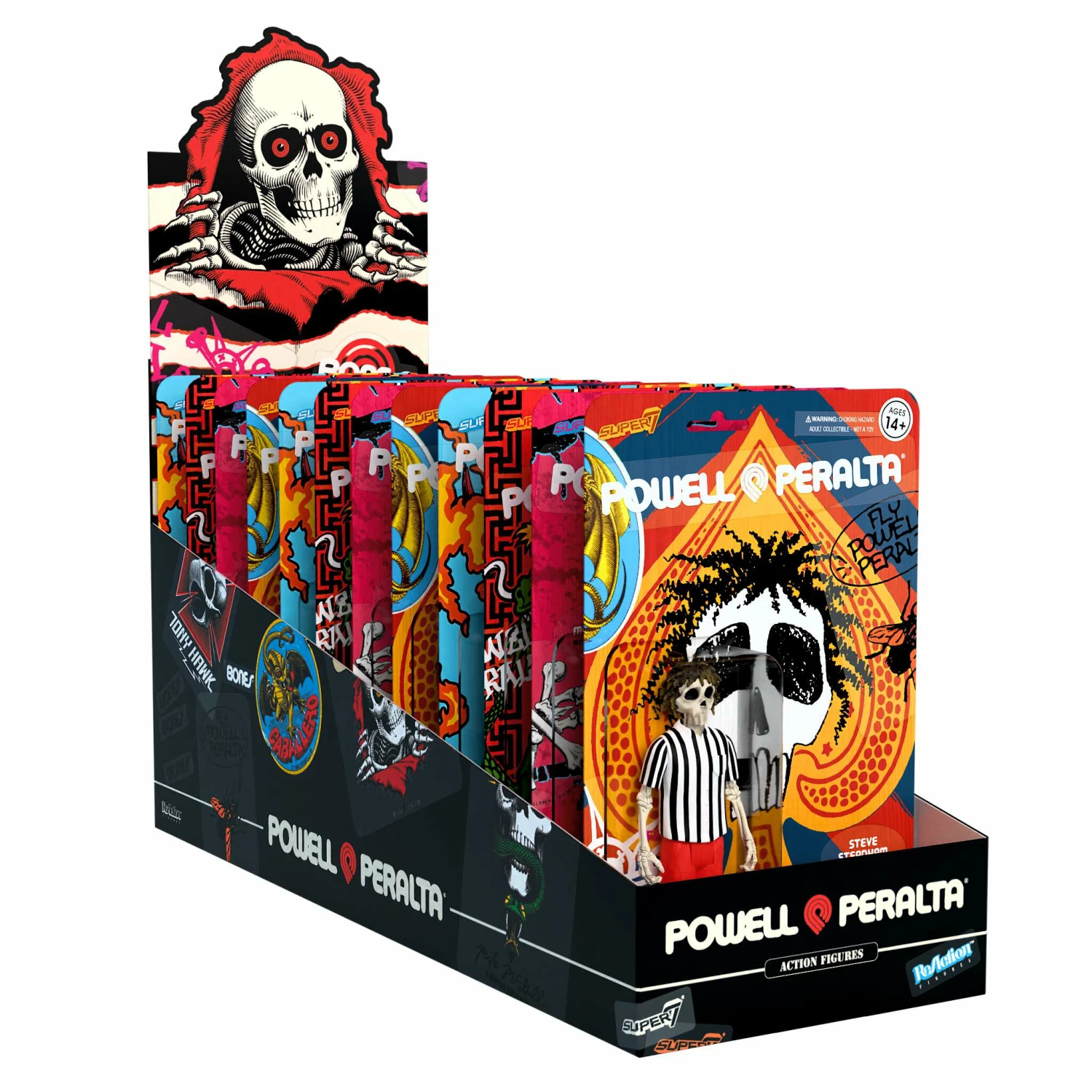 For the serious collector: A chance to get a sealed Powell-Peralta Wave 1 PDQ store display! Each PDQ contains 3 of each Powell-Peralta Wave 1 ReAction Figure for a total of 12 figures. The box opens to form the counter display for the figures.