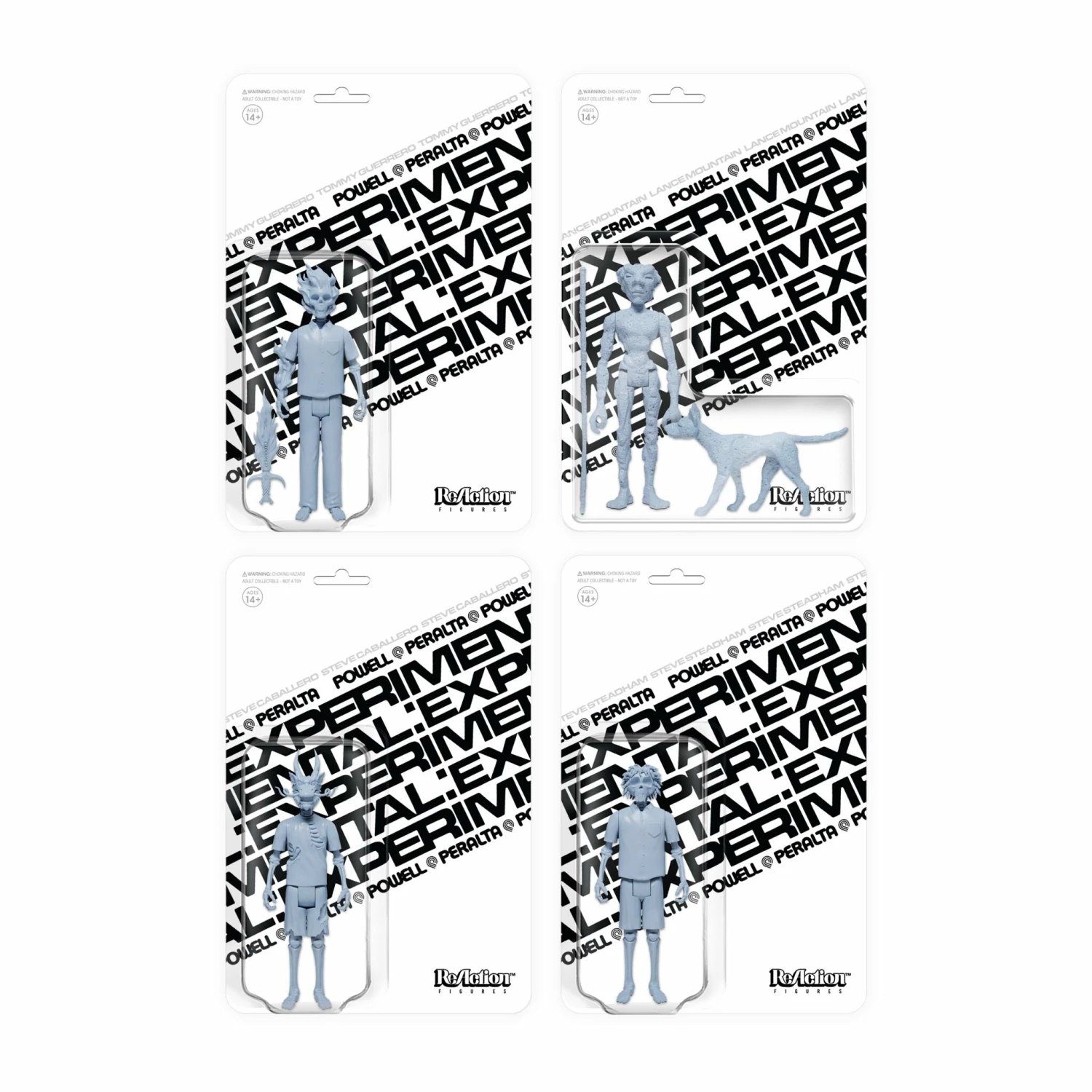 Skate culture meets toy history! In the mid-80s, team riders for iconic skateboard brand Powell-Peralta were issued prototype boards with silk-screened or stickered “Experimental” branding, mostly to ensure a rider wouldn’t appear in any photos with a blank board devoid of company logos. Around this same time, Kenner would prototype their Star Wars figures in unpainted light blue. Super7 has used this double-inspiration to create the new Experimental wave of Powell-Peralta ReAction Figures featuring Steve Caballero, Lance Mountain, Steve Steadham, and Tommy Guerrero! Each unpainted light blue figure has a design that reflects the skaters’ signature graphics and is packaged on a black-and-white “Experimental” cardback to complement the prototype aesthetic. These figures may look unfinished, but they’re only the beginning of Super7’s Powell-Peralta ReAction Figure lineup!