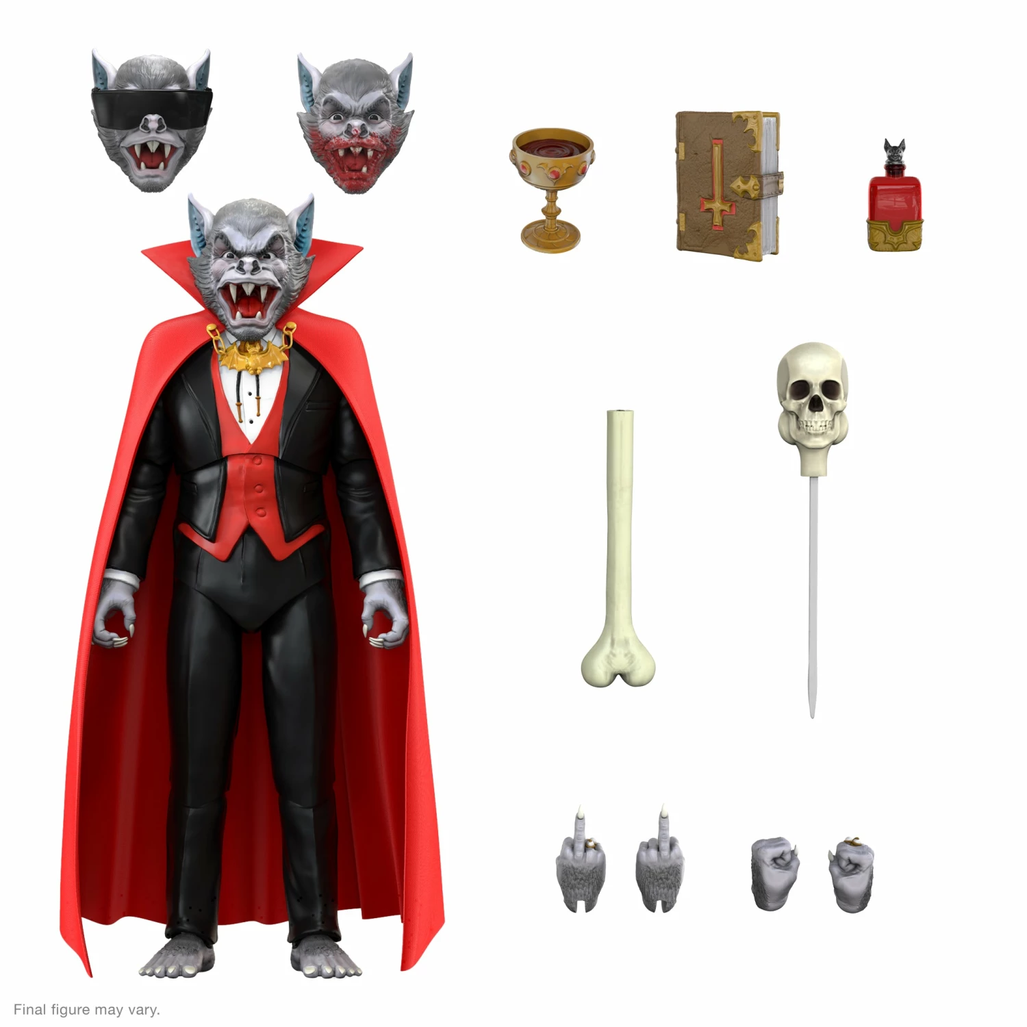 Batula, the Bat Prince of Darkness, joins the ULTIMATES! World with this 7” scale fully articulated ULTIMATES! Figure. The Worst is Super7’s own gang of the most villainous vile vermin, and Batula is one of… The Worst! Batula steps out his lair with multiple interchangeable hands and a variety of accessories, including a soft goods cape, that will charm and enchant you into his dark world.